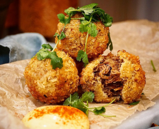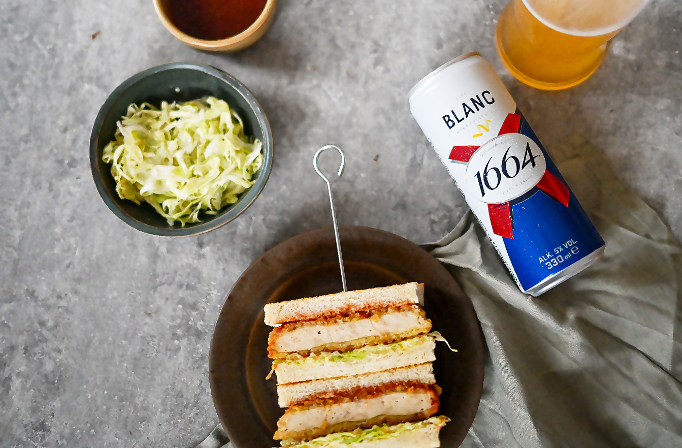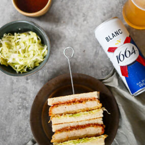 Japansk sandwich med extra allt, krispig kycklingschnitzel, kålsallad och spicy tonkatsusås!
