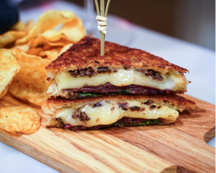 Placera alla ingredienser mellan två skivor av valfritt bröd (toast i detta fall).