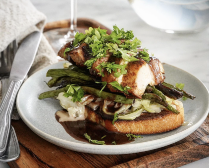 Soul food deluxe – saftig kyckling i sällskap av krämig spetskål smaksatt med karamelliserad lök och vitlök. Till det stekt haricot verts och en ljuvlig rödvinssås som verkligen binder ihop rätten. Hett tips: se till att kålen blir ordentligt krämig, inte rinnig. Löjligt gott!