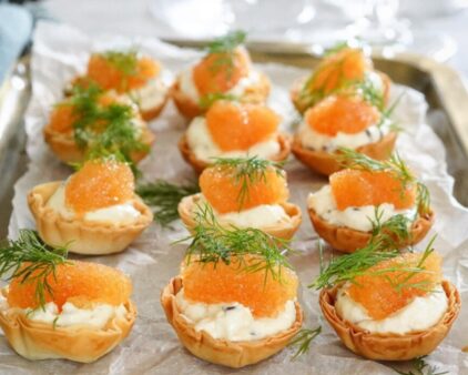 Krustader med västerbottensostkräm toppade med löjrom - A table